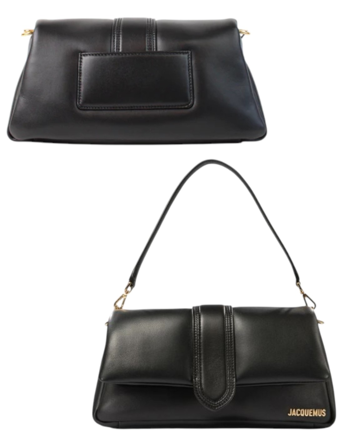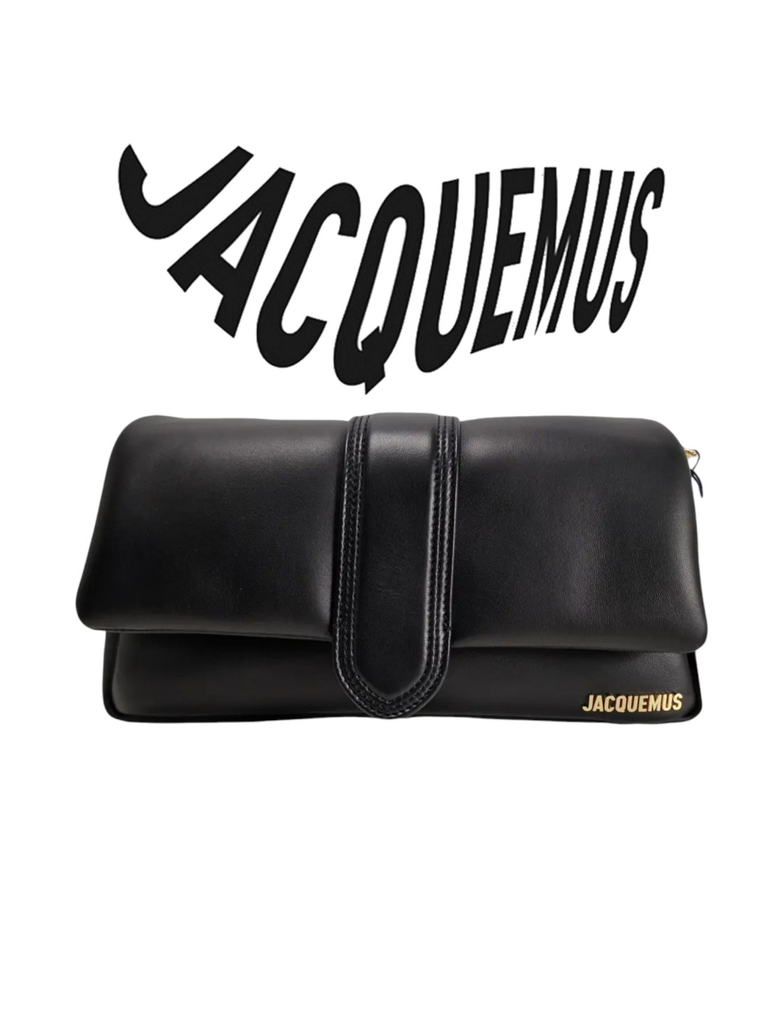 Borsa jacquemus modello bambimou in pelle nera con accessori oro . Misura grande 28 cm , dotata di doppia tracolla . Si può portare sia a spalla che crossbody . Completa qualsiasi outfit