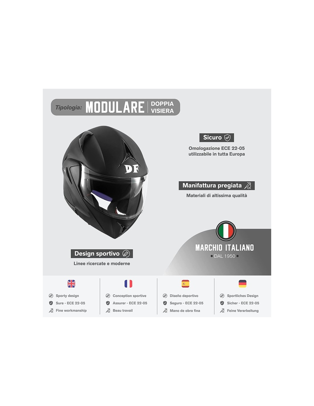 CASCO DIEFFE MODULARE CON DOPPIA VISIERA