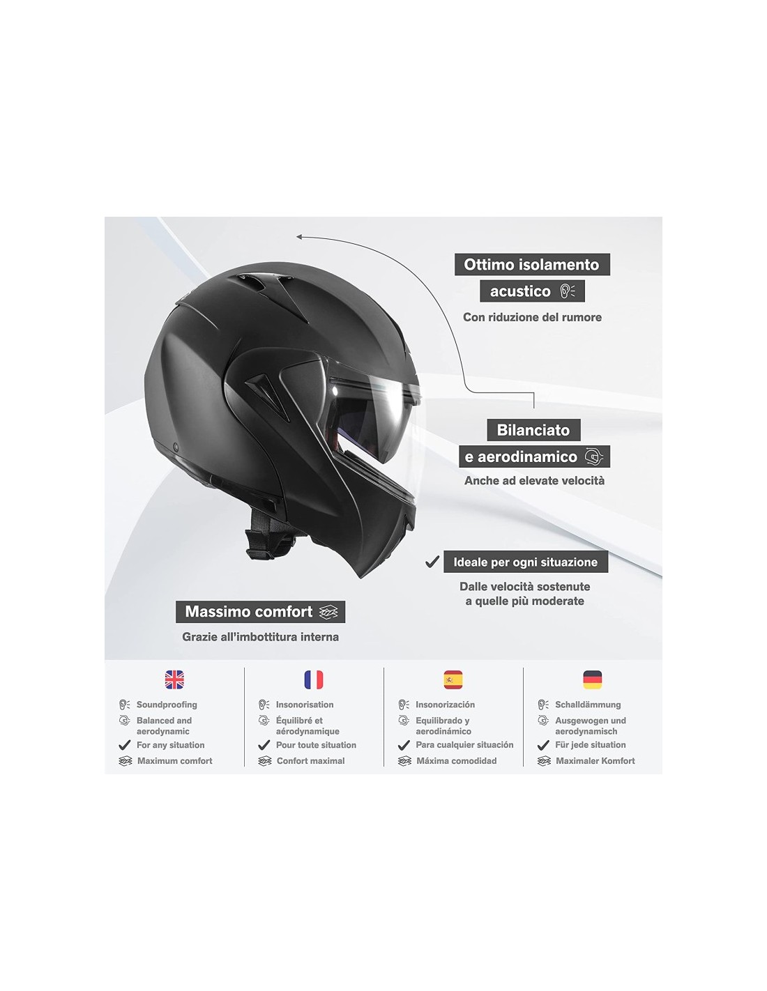 CASCO DIEFFE MODULARE CON DOPPIA VISIERA NERO OPACO